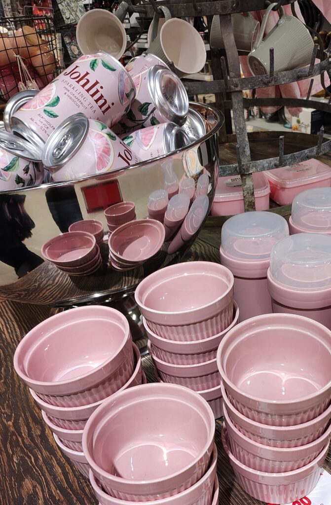 Sve je u roza boji. Rozo je cvijeće, šalice, šampanjci, limenke sokova, svijeće, boce vina, sapuni, kozmetičke torbice, keramičke kućice… Na znam ima to veze s onom starom pričom kako su se u teškim vremenima žene najviše dotjerivale. Nosile su najfinije najlonke i najcrvenije ruževe na usnama. Prkosivši tako strahu, tmini, beznađu, neveselju.