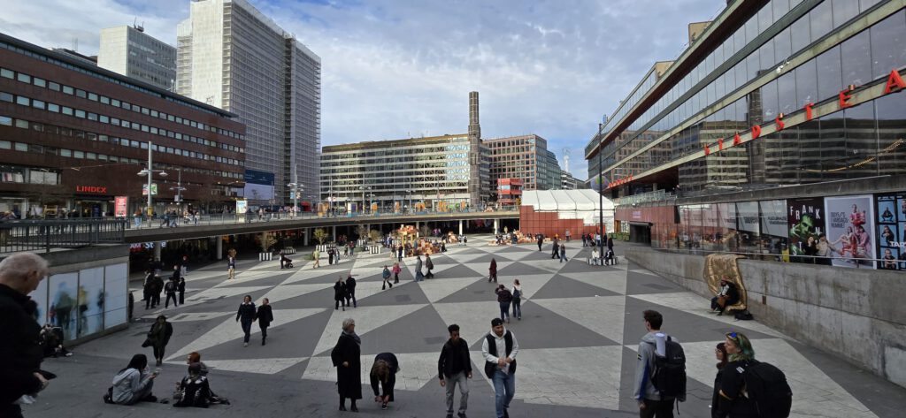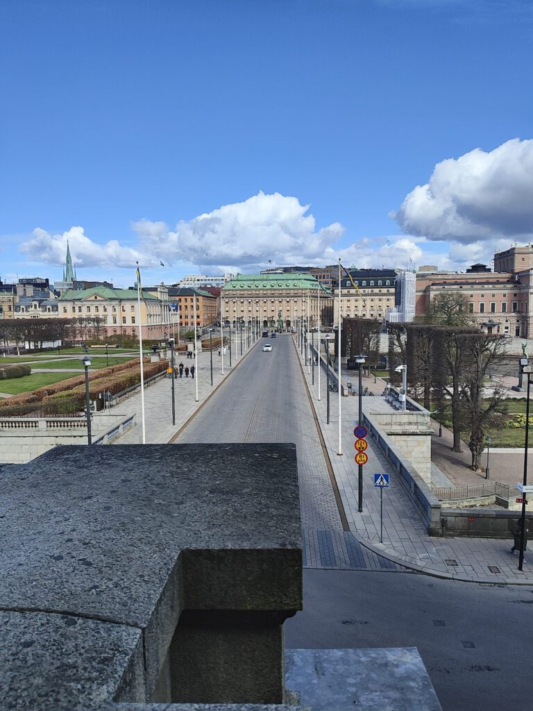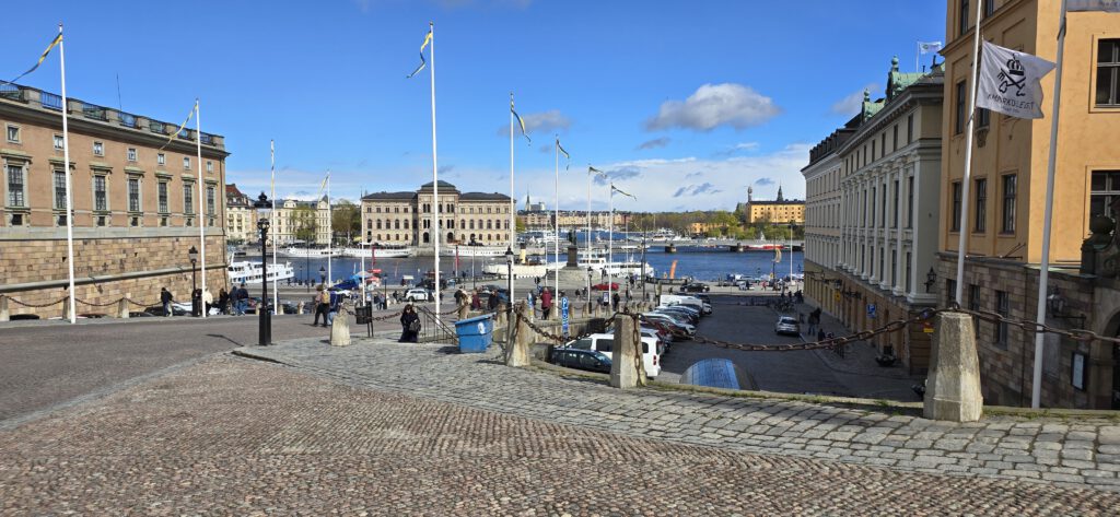 Ja kao ja, poželjela sam vidjeti kraljevu palaču, koja je također u centru. Šetnjom preko poznatog mosta velebne građevine bacaju vas u doba davne Švedske pokazujući moć kraljevine kroz povijest. Lav izgleda grublje nego sam očekivala. Hladnoća je prisutna. Puhao. je i jak vjetar, tako da je hladnoća bila sa svih strana. Nakon kraljeve palače smjestili smo se u još uvijek jutarnjim satima na malom trgu u Gamla Stanu kojeg je obasjalo pretoplo proljetno sunce. Mnoge suvenir trgovine nude poznate švedske konjiće. Kupila sam mali pliš ruksak koji ima dva sobića. Nazvali smo ih Hej i Hej. Kao poznati švedski odzdrav. Zaštićeni od vjetra popili smo chailatte. Trg se napunio turistima i dobio se dojam nekog mediteranskog gradića. Tako izgledaju i uličice u tom starijem djelu grada. I ovdje je jako puno talijanskih restorana. Čini mi se da sam čula kako Stockholm zovu skandinavskom Venecijom. Možda i je. No nismo se stiglo provozati brodićem po moru i tako vidjeti grad. Ostavili smo tu za drugi put, kao i ABBA-in muzej čiji su nas posteri i reklame pratili niz sve ulice centra grada, kao i mnogobrojni posteri – najave nadoilazećih koncerata u Stockoholmu. Uskoro dolaze Prodigy te Morrissay. Ne znam na kojeg bi rađe otišla, a glazna koju smo ndje usput slušali, definitivno vraća u devdesete.