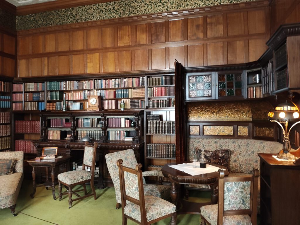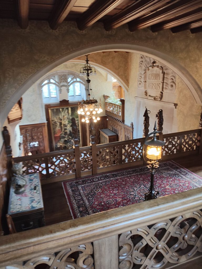 Nakon ulaska u dvorac i plaćanja ulazice koja iznosi oko 15 eura po osobi, ulazite u veliki salon u kojem su dva kraljevska stolca, stol za goste i veliki kamin koji grije. Dobija se dojam ugode i topline, što inače nije slučaj u dvorcima. Uz tu sobu nalazi se i velika dvorana u kojoj se odvijaju svečane večere za oko 100 osoba. Potom dolazite u sobu za biljar i već tada vidite da ste na posebnom mjestu kojeg krasti spoj modernog života i stare engleske tradicije. U velikoj biblioteci s malim pisaćim stolovima s foteljama okruženih palmama i mnoštvom kutija kubanskih cigara mnogo toga podsjeća na istok, što i nije čudo obzirom da je mnogo toga u dvorcu napravljeno u tada popularnom arapskom stilu koji je očito bio popularan i ovdje na sjeveru. Mnoštvo mozaika po zidovima dokazuje upravo to, tu dozu egzotičnosti samoga dvorca koju su unijeli vlasnici, očito po vlastitoj potrebi. Svaku sobu krasi kamin, a dvorac ima i starinsko centralno grijanje s velikim radijatorima.